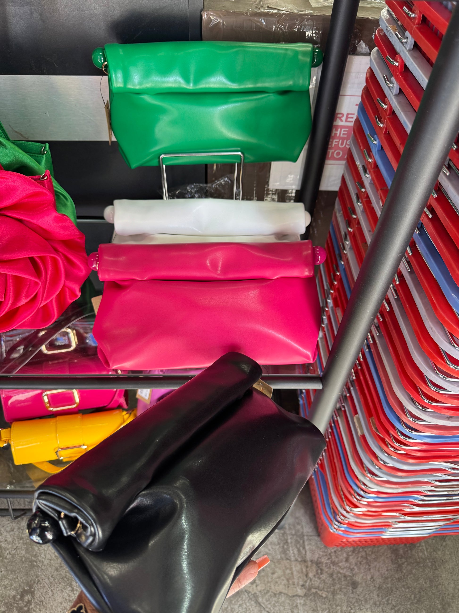 • Style : Une pochette douce et structurée à la fois, avec un rabat enroulé qui lui donne un look moderne et minimaliste.